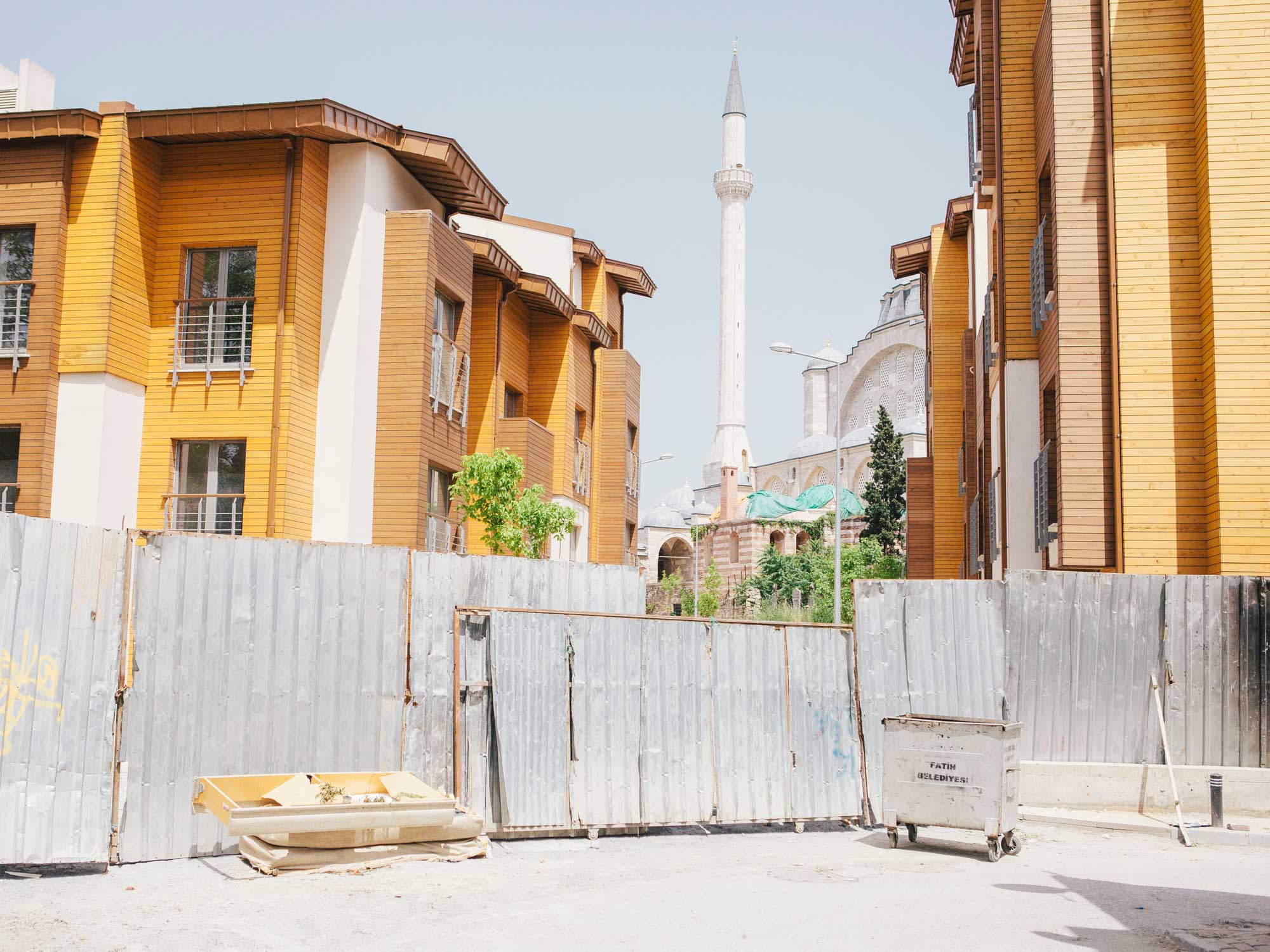 Auf einem Hügel über dem Goldenen Horn erhebt sich die Süleimaniye Camii, die größte und prächtigste Moschee Istanbuls. Gepflegte Rasenflächen und Blumenrabatten zieren die Anlage und in der Ferne schimmert blau der Bosporus. Doch verlässt man die Terrasse und wendet sich die Straße hinab nach links, findet man sich in einer Ruinenlandschaft: halb abgerissene Häuser ohne Türen, Fenster und Dach, Brachflächen voller Trümmerhaufen, dazwischen hohe Zäune.